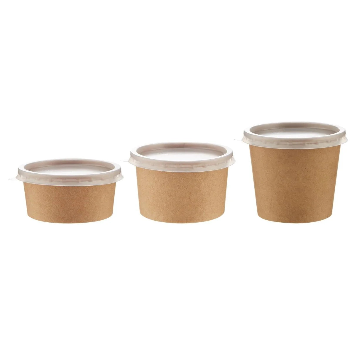 These Kraft Paper Portion Cups with Lids are perfect for serving sauces, dips, and small portions. Made from eco-friendly kraft paper, they provide a secure and convenient packaging solution for condiments and sides. Ideal for takeout, catering, and meal delivery, these cups offer a sustainable and stylish way to portion your food while keeping it fresh and intact.