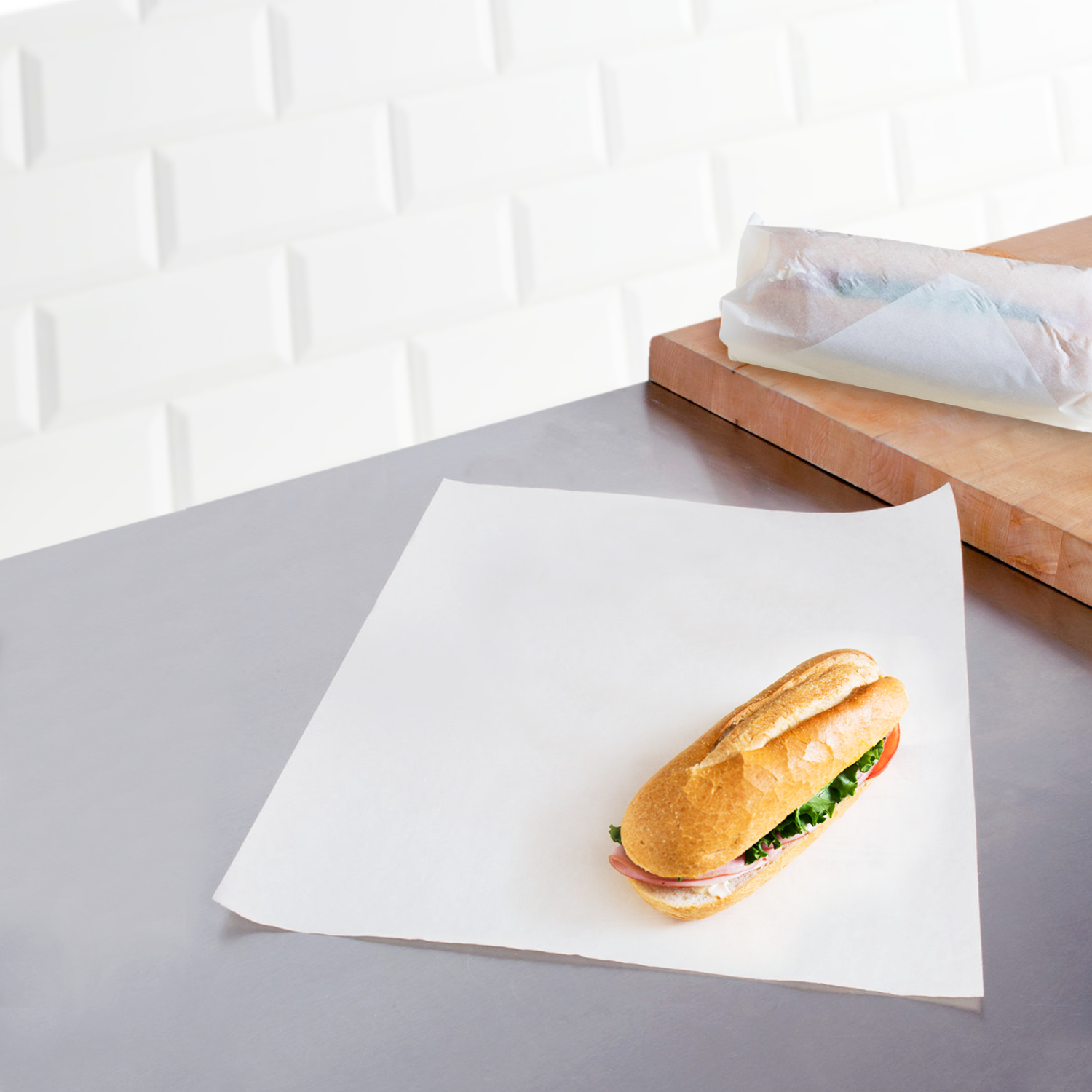 This Sandwich Paper is perfect for wrapping and serving sandwiches, burgers, and other deli items. Made from high-quality, food-safe materials, it helps keep your food fresh while preventing leaks and spills. Ideal for cafes, takeout, and picnics, this durable paper offers a convenient and hygienic solution for packaging your meals. Its classic design adds a touch of style to your food presentation, making it a must-have for any food service.
